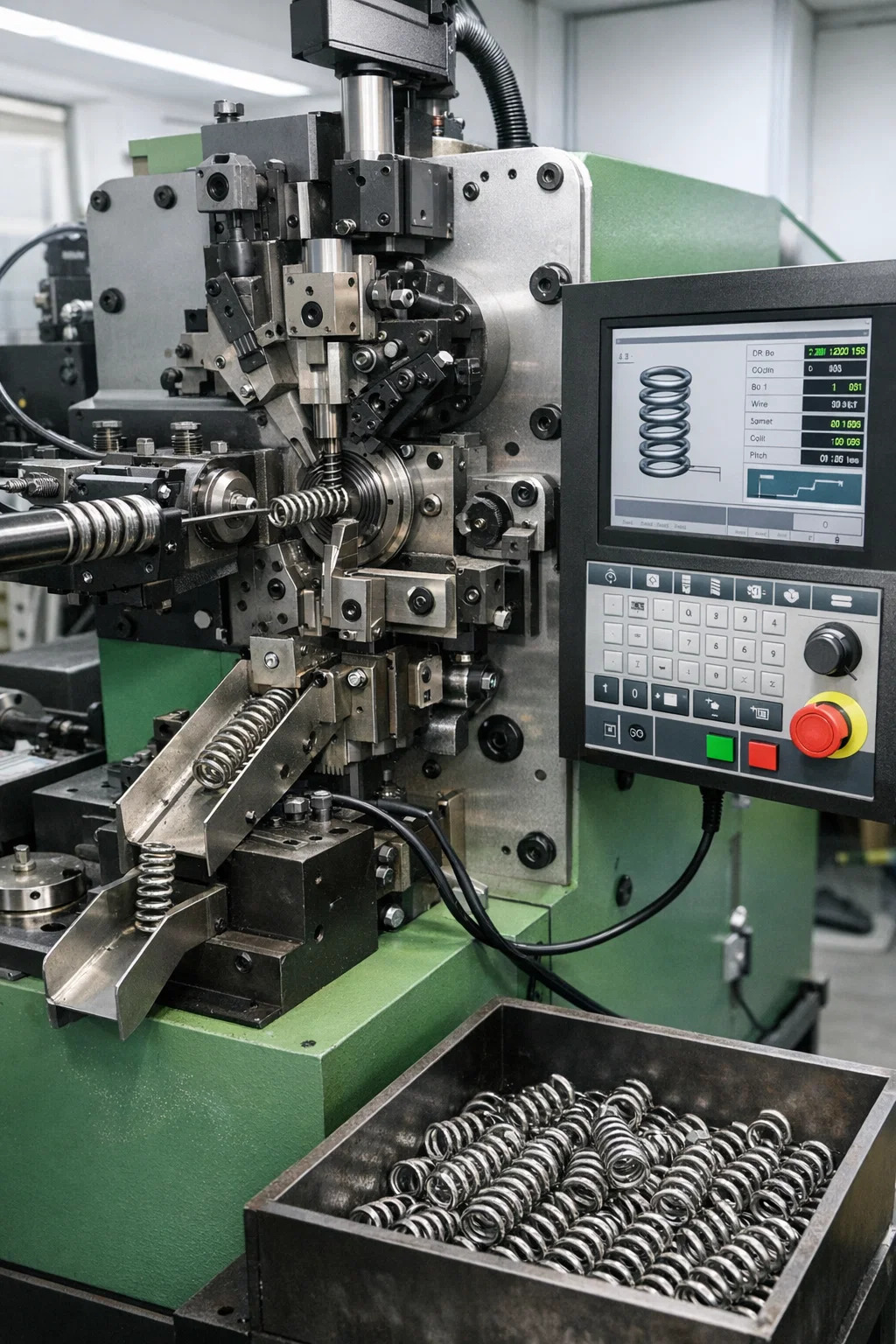 Станки для гибки пружин сталкиваются с особенно острой версией этой проблемы. Весь продукт определяется его упругим восстановлением — например, пружина сжатия должна предсказуемо накапливать и высвобождать энергию, поэтому процесс навивки должен точно учитывать упругий возврат для достижения целевой длины в свободном состоянии и жесткости пружины. Пружина, которая возвращается назад больше, чем запрограммировано, будет слишком длинной; тот, который меньше пружинит, будет слишком коротким, и оба не пройдут нагрузочное тестирование.
